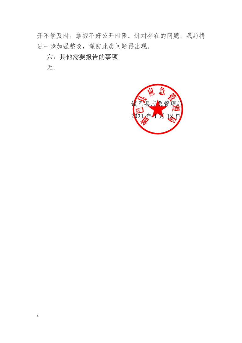 镇巴县应急管理局关于报送2020年度信息公开工作的报告