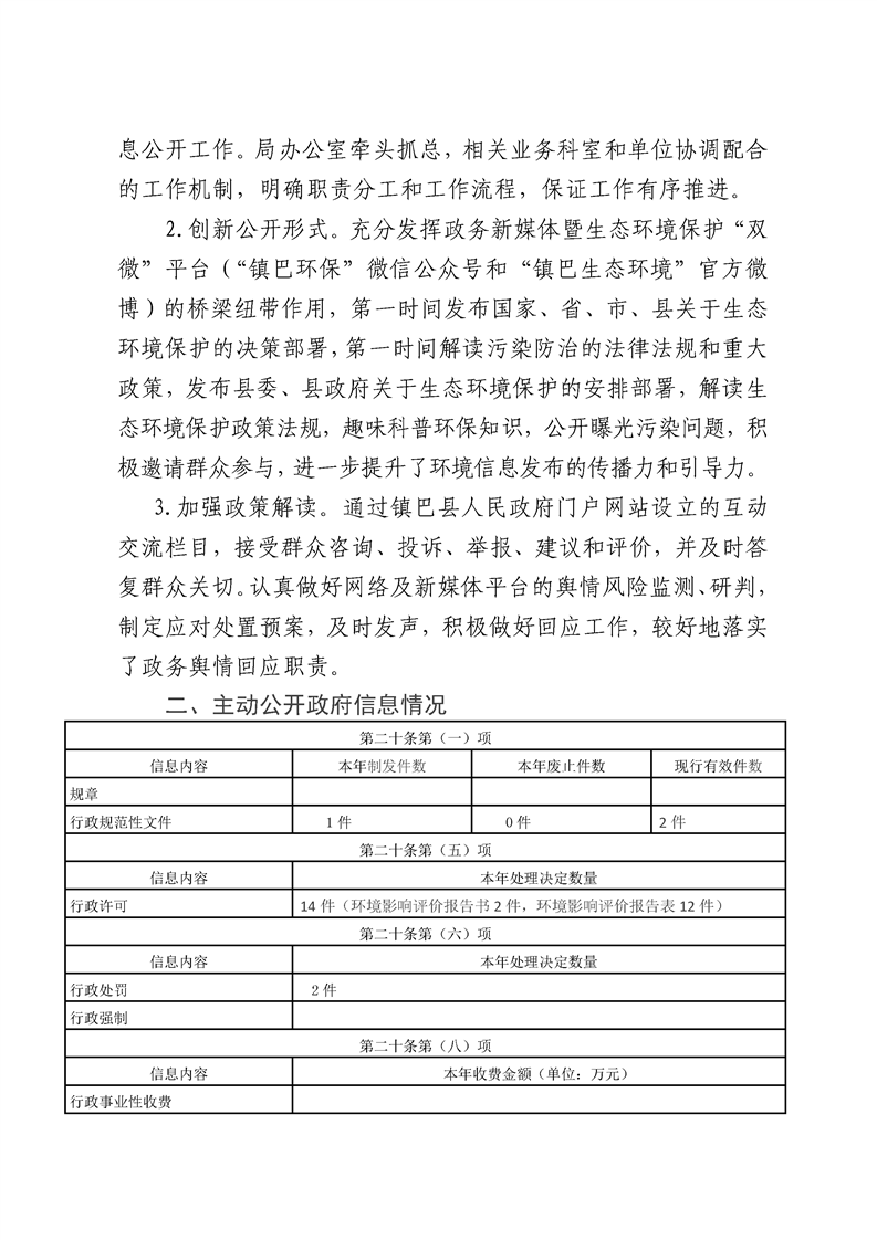汉中市生态环境局镇巴分局2021年度政府信息公开工作年度报告