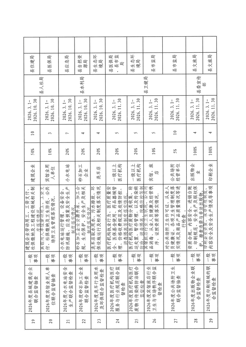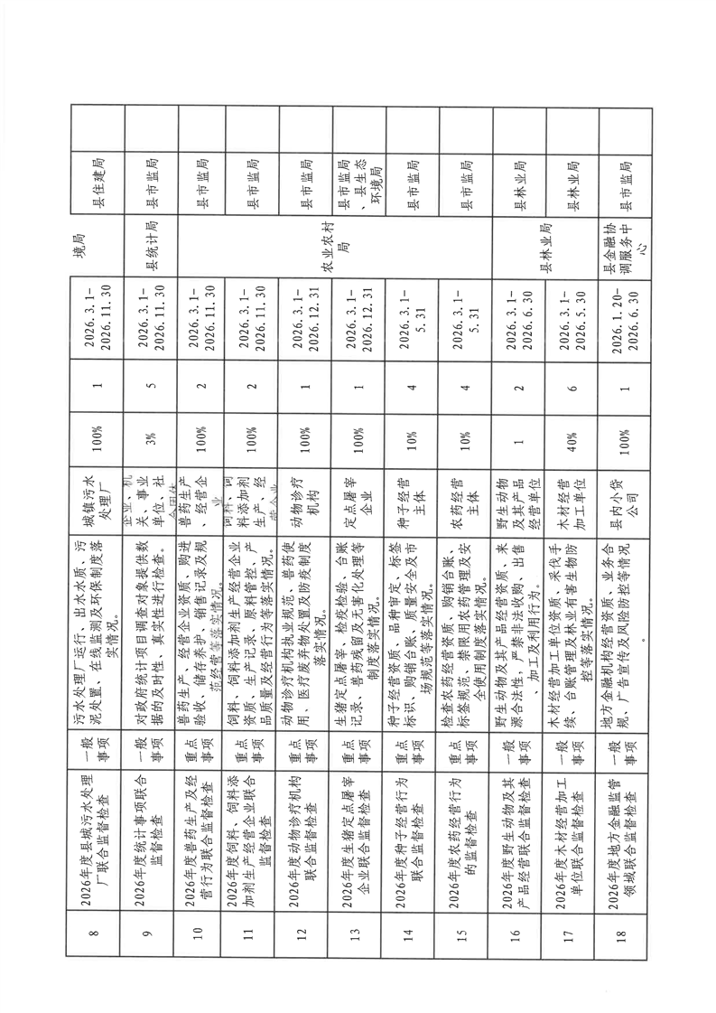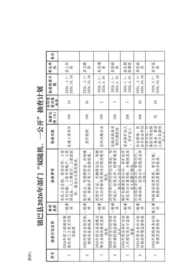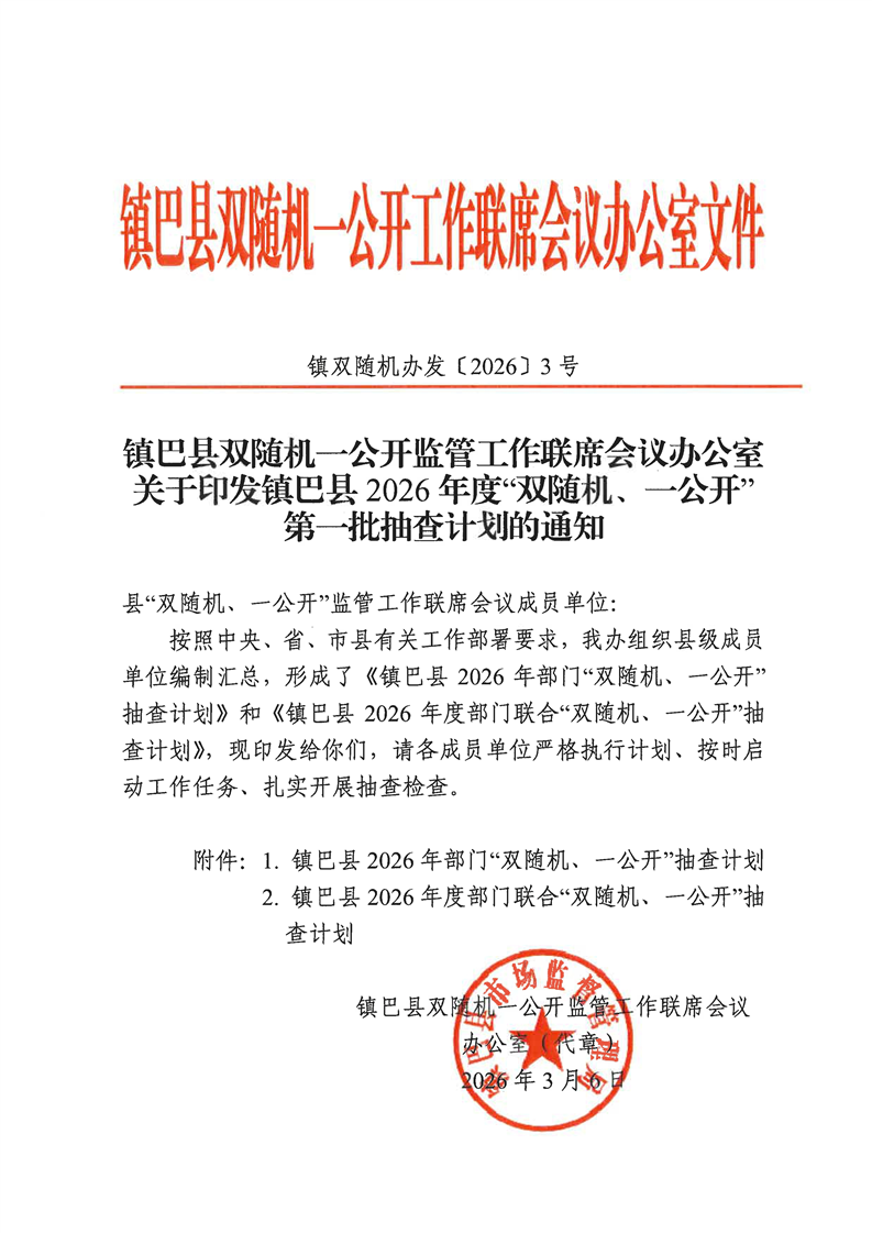 镇巴县双随机、一公开监管工作联席会议办公室关于印发镇巴县2026年度“双随机、一公开”第一批抽查计划的通知