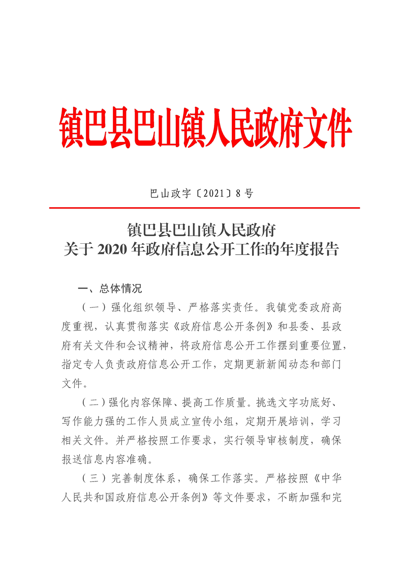 巴山镇2020年度信息公开工作年度报告