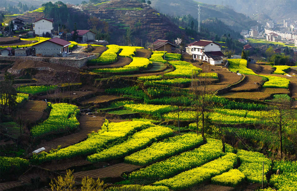渔渡镇位于镇巴县南部,距县城30公里,210国道纵贯全境,是出陕入川的重要门户。每年的3、4月份,漫山遍野的油菜花同时怒放,朵朵成簇、花色袭人,盛开的油菜花与镶嵌其间的麦苗及青山绿水相映成趣、蔚为壮观,放眼一看,每个山头都好像披上了金色的挂毯,漫山遍野的油菜花形成一片一片令人心醉的黄色花海,构成渔渡一道亮丽的风景线。