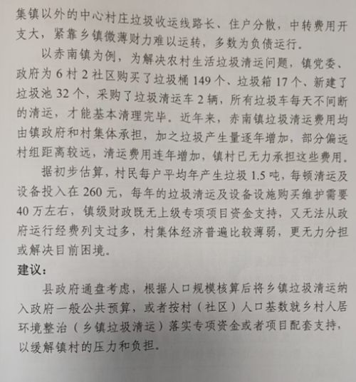 关于将乡镇垃圾设施设备及清运相关费用纳入政府一般公共预算的建议