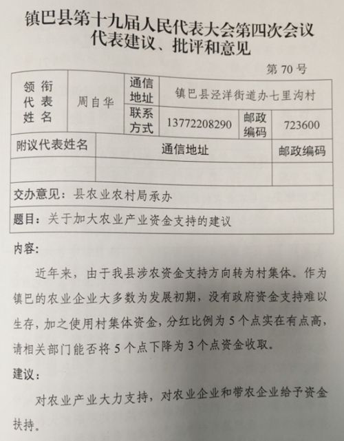 关于加大农业产业资金支持的建议