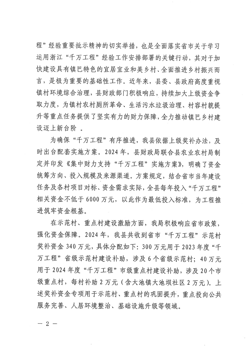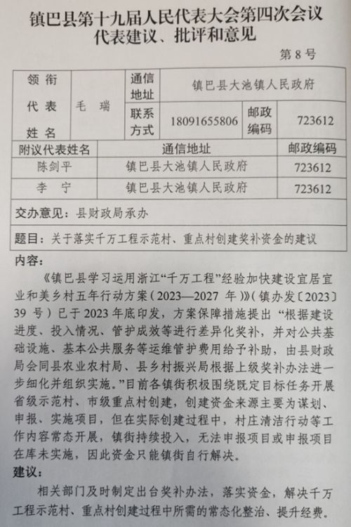 关于落实千万工程示范村、重点村创建奖补资金的建议