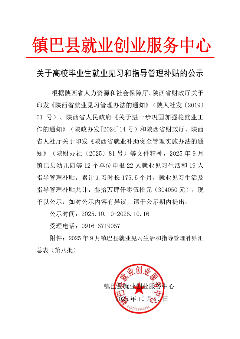 关于高校毕业生就业见习和指导管理补贴的公示