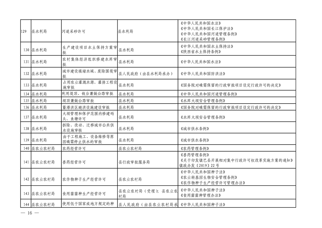 镇巴县人民政府办公室关于公布行政许可事项清单(2023年版)的通知