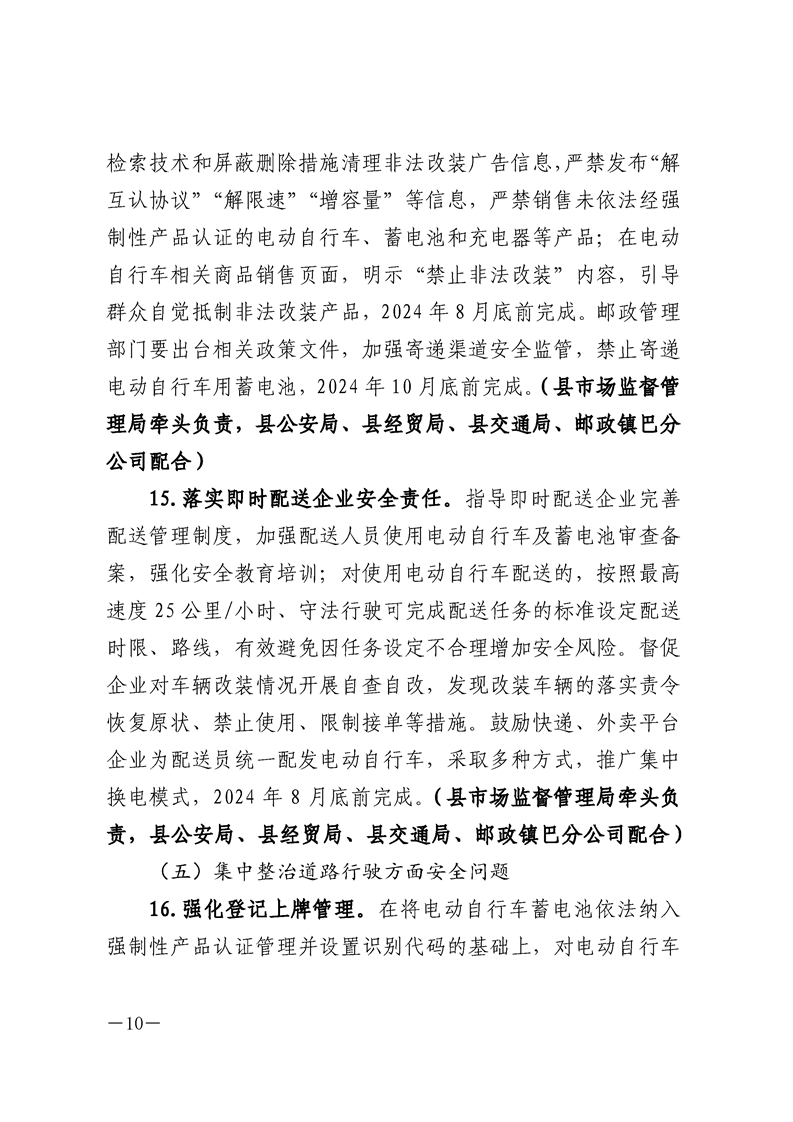 镇巴县人民政府办公室关于印发《镇巴县电动自行车安全隐患全链条整治行动实施方案》的通知