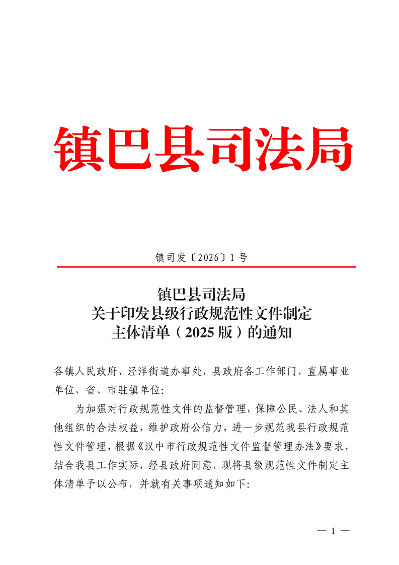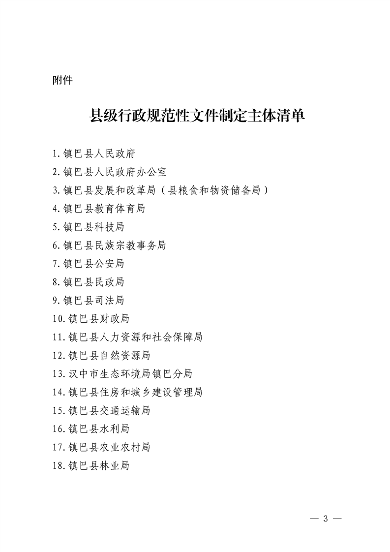 镇巴县司法局关于印发县级行政规范性文件制定主体清单(2025版)的通知