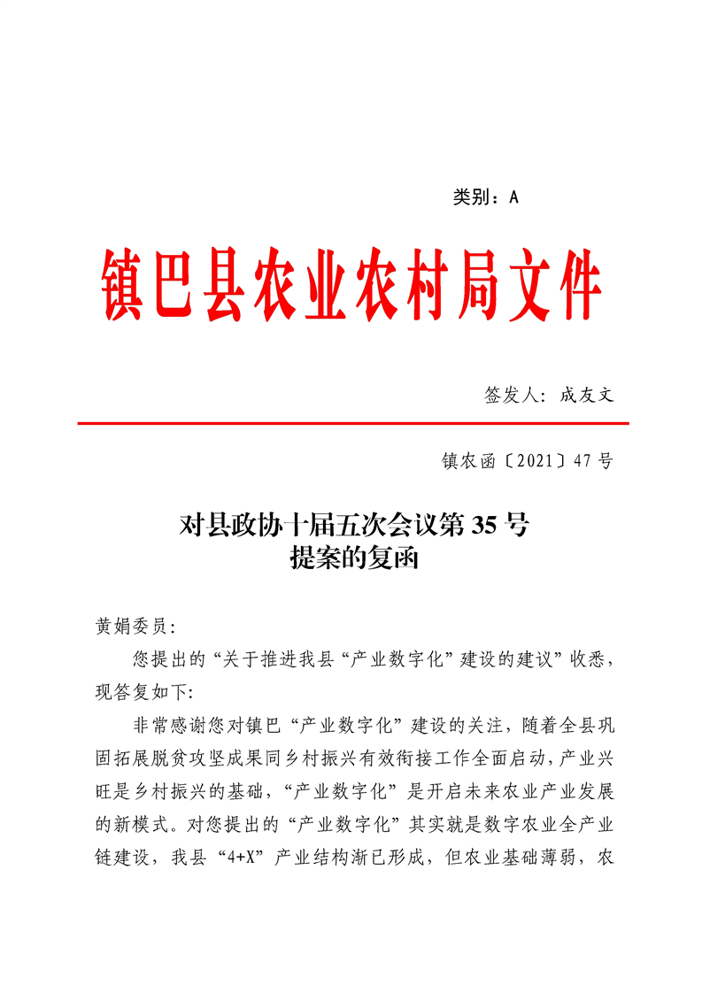 | 案由: | 关于推进我县“产业数字化”建设的建议 | ||||
