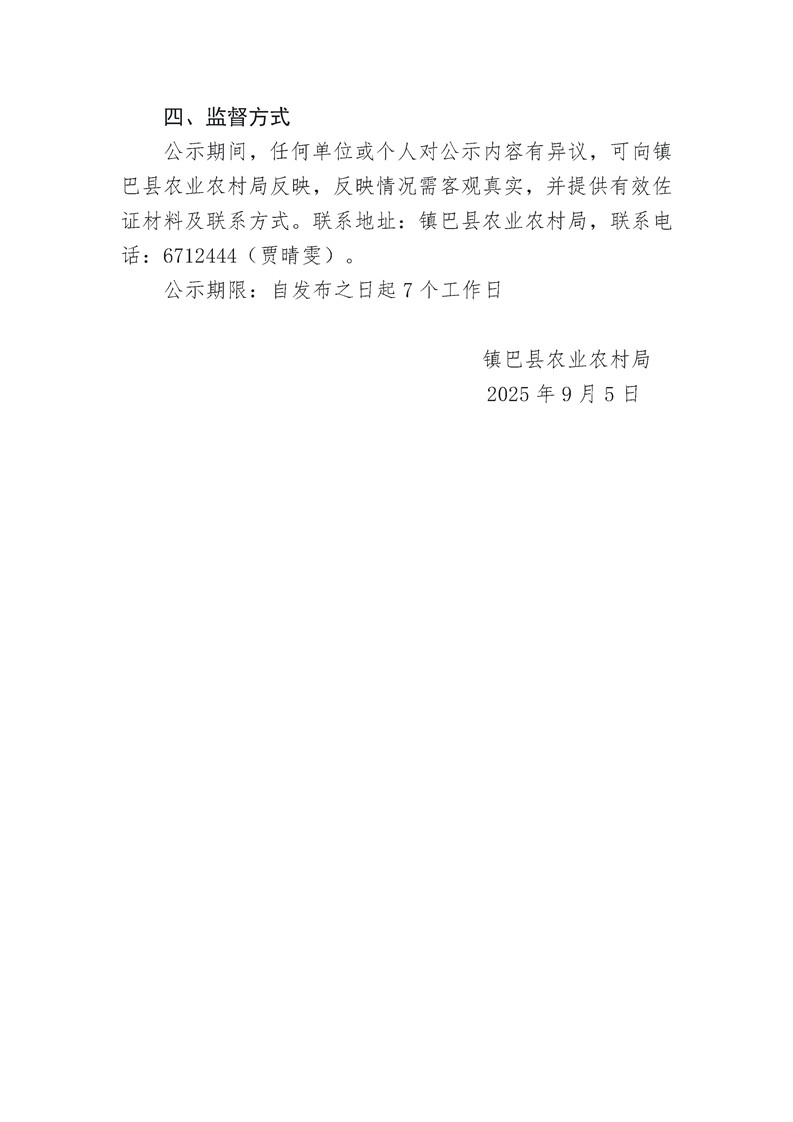 镇巴县2025年生猪良种补贴项目公示