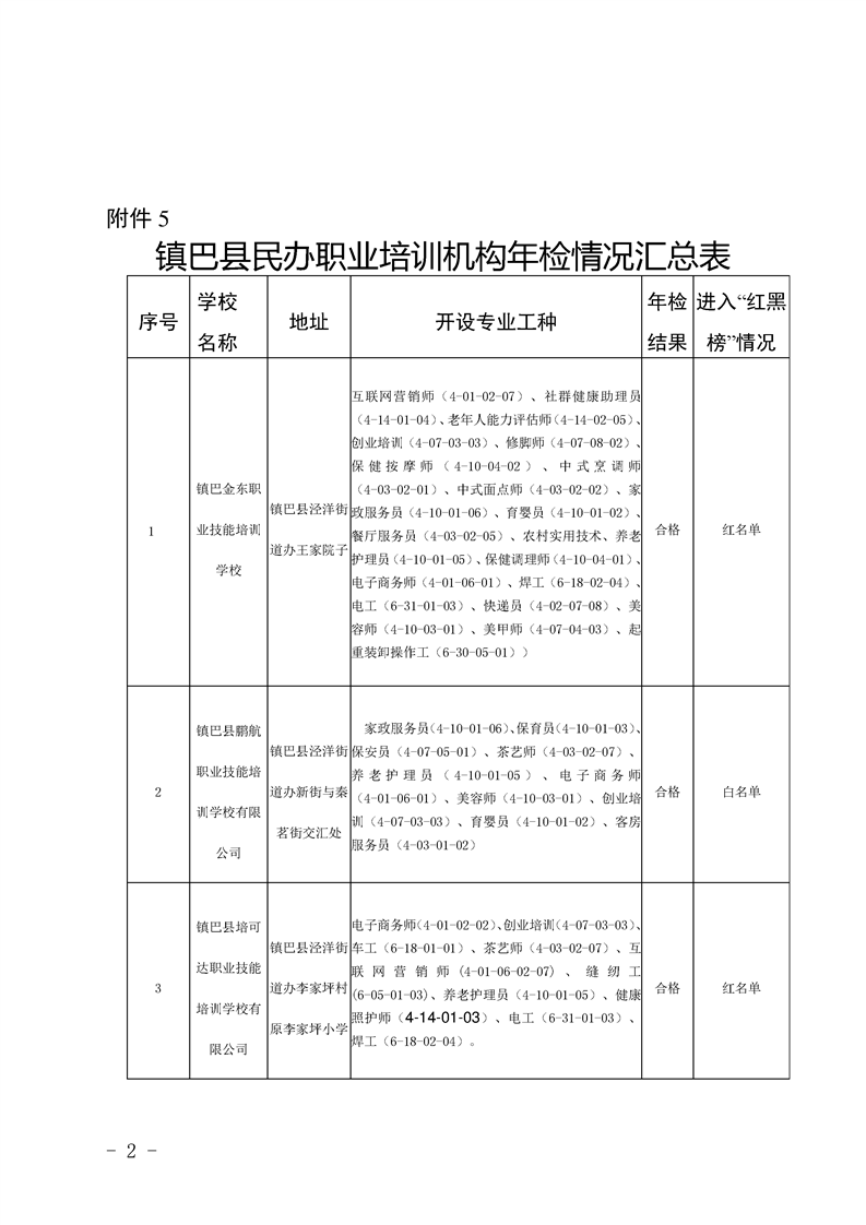 镇巴县人力资源和社会保障局关于2025年度民办职业培训机构年检情况公示